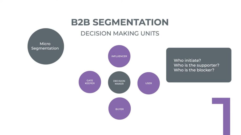 B2B Micro Segmentation digunakan untuk mengidentifikasi siapa yang bertindak sebagai decision maker, influencer, user, buyer, gate keeper dalam proses dealing B2B.